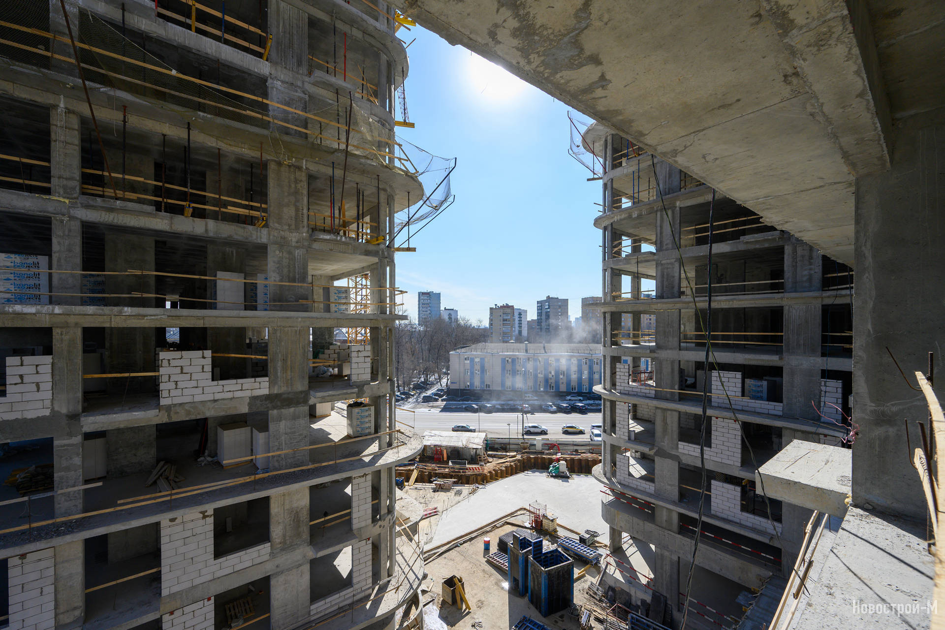 Строительство представляет собой современный монолитный проект бизнес-класса, который включает два корпуса высотой от 17 до 21 этажей.