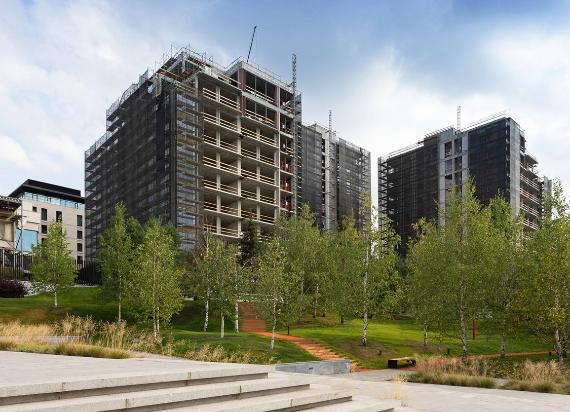 Включает восемь клубных домов высотой от 8 до 12 этажей.