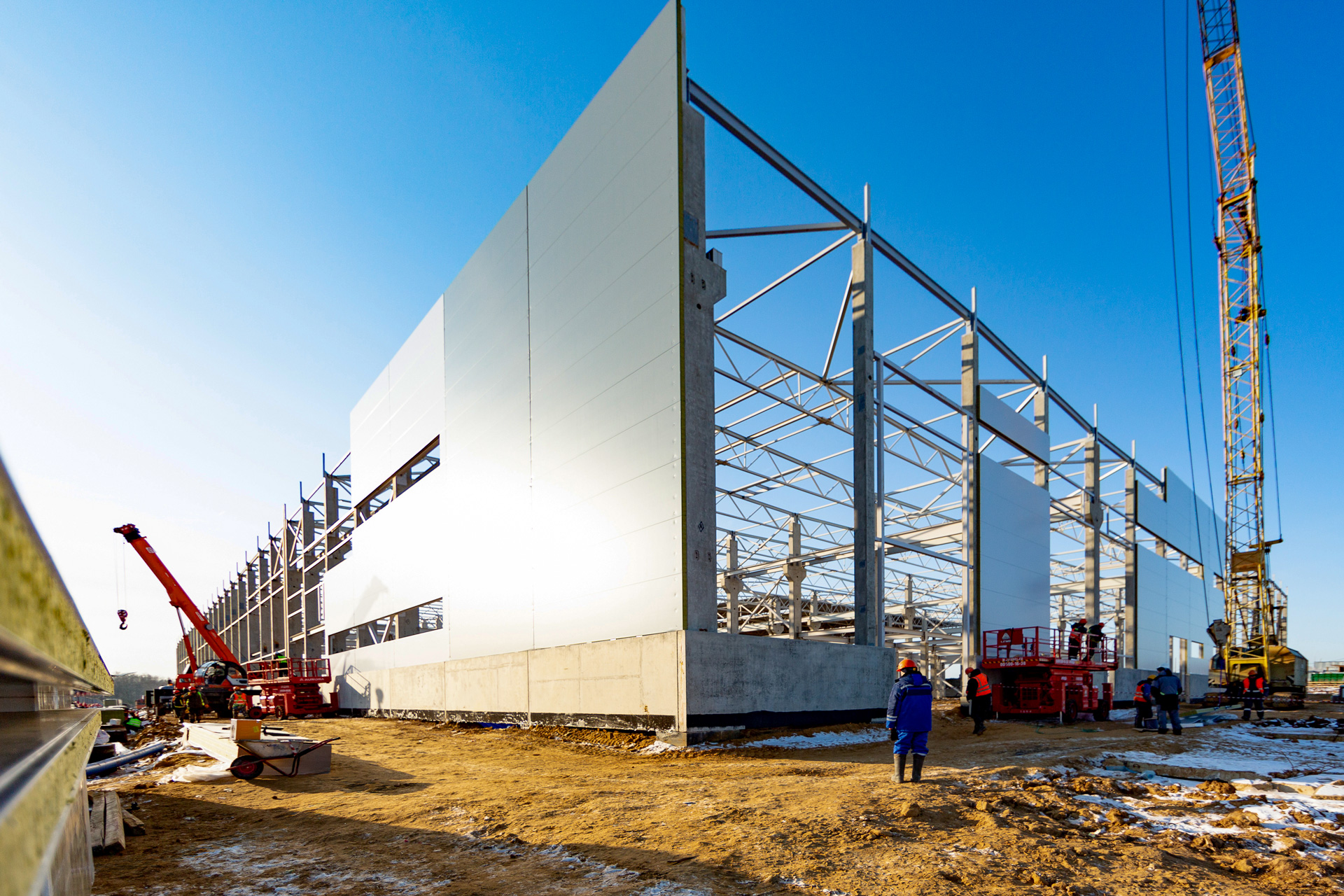 В настоящее время на площадке ведутся активный строительные работы.В производственном корпусе площадью 20 тыс. кв. м будут производиться домокомплекты