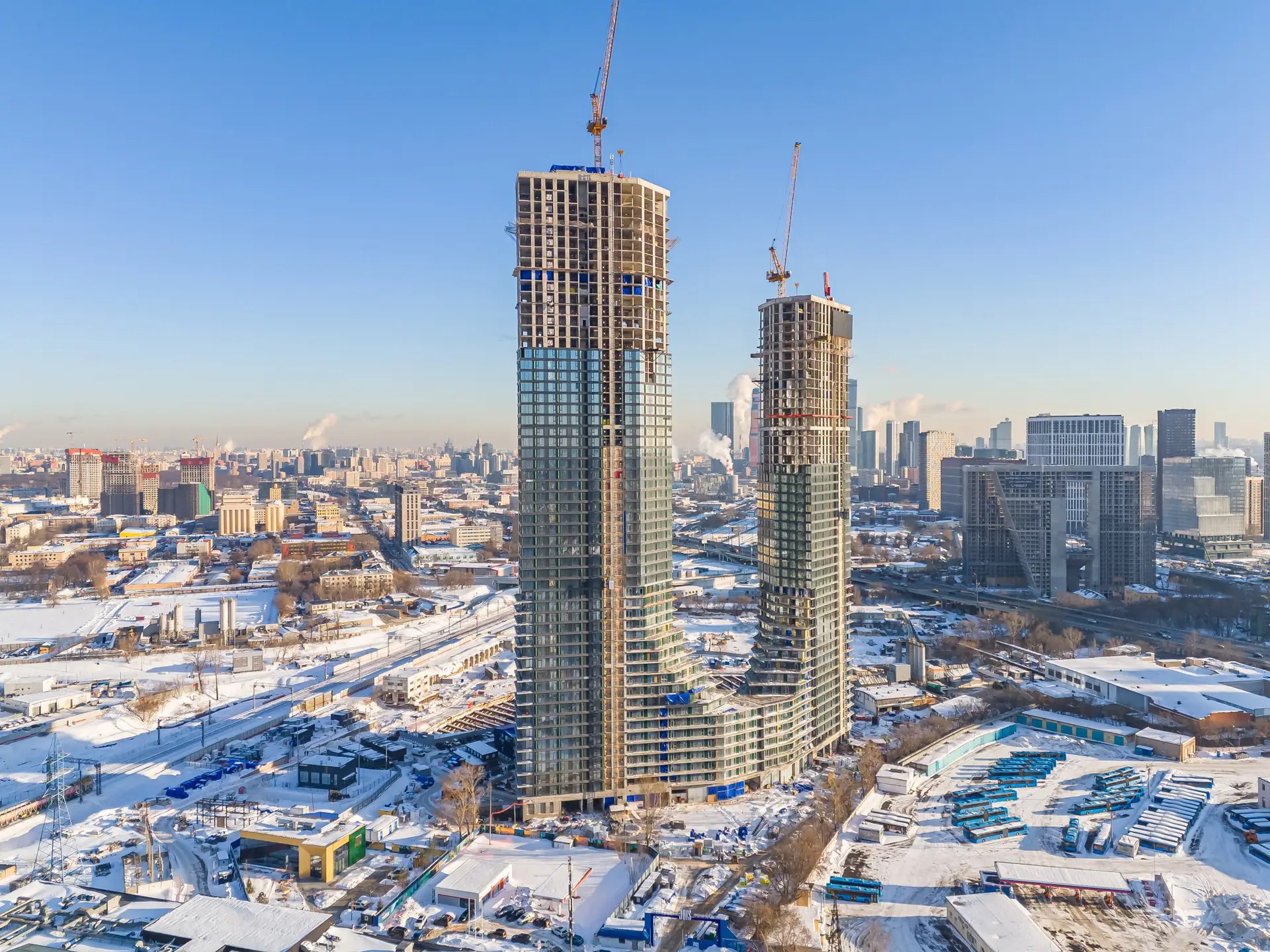 Дома ступенчатой формы высотой от 46 до 55 этажей и их расположение позволяют увеличить обзорность,